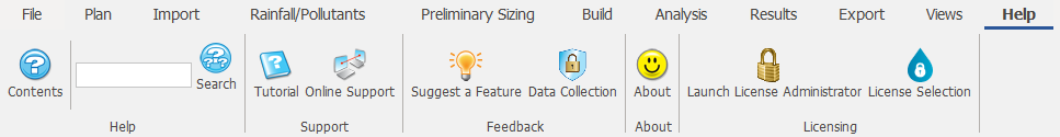 Import, create and manage rainfall records and pollutants. For more information about this topic, go to Rainfall Ribbon.