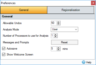 The Preferences settings allow designation of units, color theme and general software operation settings. For more information about this topic, go to Preferences.