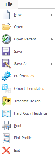 From here we can start a new project, open an existing one, save a project, print it and exit from InfoDrainage. For more information about this topic, go to File Menu.