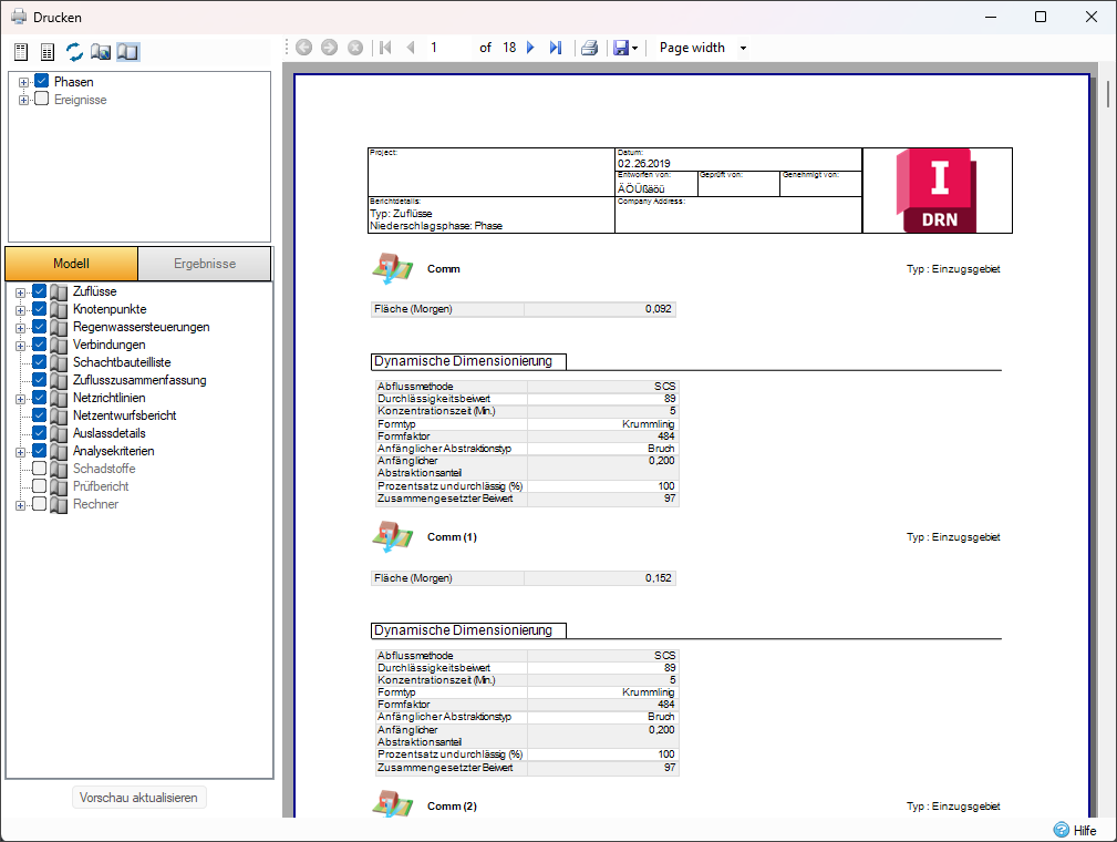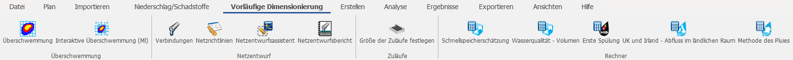 Use a range of preliminary sizing tools to quickly assess your site and complete sizing calculations. Automatically size your pipe networks and create Full, HEC-22, or Methode de Caquot pipe sizing reports. Quick and handy analysis of runoff across the site and easy estimates of the treatment volume needed. For more information about this topic, go to Preliminary Sizing Ribbon.