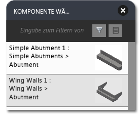 - Wählen Sie den orangefarbenen Stilnamen der Widerlagerkomponente, um einen anderen parametrischen Widerlagerkomponentenstil im Katalog anzugeben. Doppelklicken Sie auf einen neuen Stil, um ihn auf das ausgewählte Widerlager anzuwenden.