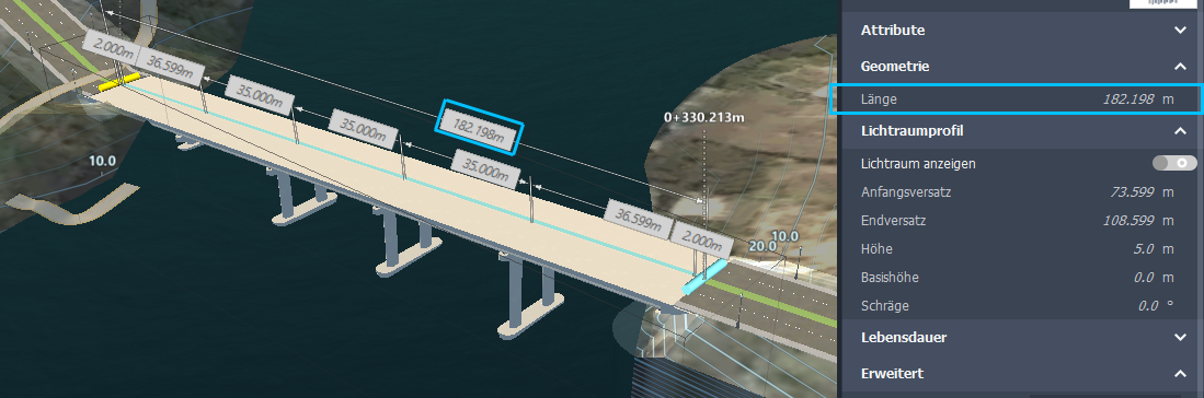Sie können die Länge einer Brücke zwischen Widerlagern ändern, indem Sie die Position der Anfangs- und Endstation ändern.