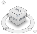 Der Autodesk-Ansichtswürfel ist eine permanentes Element der Benutzeroberfläche, auf der Sie den Ansichtspunkt des Modells durch Klicken und Ziehen anpassen können.