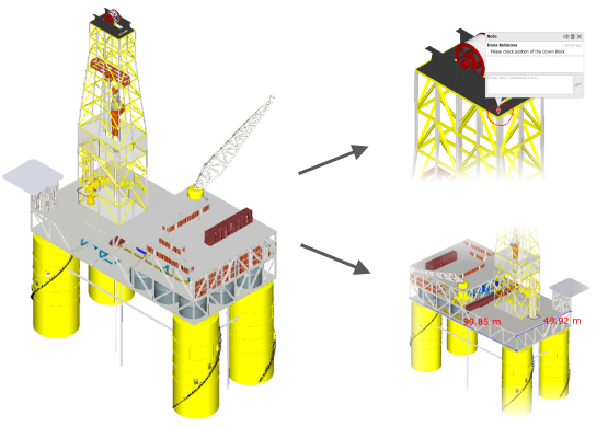 Ein digitaler Prototyp kombiniert 3D-Daten, die von unterschiedlichen Autoren in verschiedenen 3D-CAD-Formaten erstellt wurden. Nachdem alle Komponenten in eine Prototyp-Datei eingefügt und dort platziert wurden, kann das Team zusammenarbeiten, um Kollisionen aufzulösen, Messungen durchzuführen und Notizen auszutauschen.