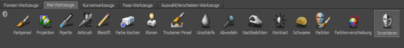 Die Farbe innerhalb des Pinselrings ändert sich in den inversen Farbton und Farbwert. Es tritt kein Aufbau des Invertierungseffekts auf, da durch wiederholte Pinselstriche im selben Bereich die Farbe einfach noch einmal invertiert wird.