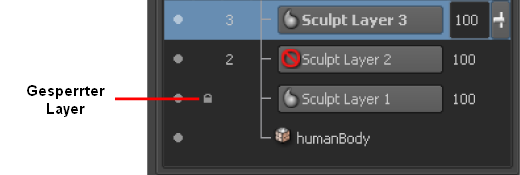 Sie können Formen-Layer sperren, um zu vermeiden, dass die dort enthaltene Modellierung versehentlich verändert wird. Bei aktivierter Sperre bleiben die Formen im Layer sichtbar, können jedoch nicht bearbeitet werden.