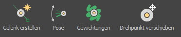 Ermöglicht das Verschieben des Drehpunkts eines aktiven Gelenks, um sein Verhalten in Bezug auf die Modellkomponenten zu beeinflussen. Siehe Anpassen der Drehpunktposition eines Gelenks.