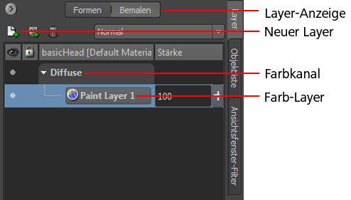 Das Fenster Neuen Farb-Layer erstellen wird vor der Anwendung von Farben angezeigt, denn Sie benötigen mindestens einen Farb-Layer zum Malen auf ein Modell. Der Farb-Layer speichert den Farbauftrag als Bitmap-Bild.