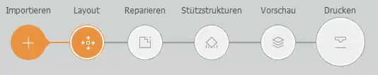 - Vorbereitungsleiste. Klicken Sie sich durch die Ablaufschritte, um Ihr Modell für den 3D-Druck vorzubereiten. Wenn Sie Schritte im Arbeitsablauf überspringen, führt Print Studio diese Schritte automatisch durch.