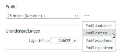 Profil löschen auswählen. Die vorgabemäßigen Druckprofile können weder geändert noch gelöscht werden.