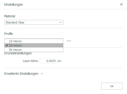 Jeder Drucker verfügt über vordefinierte Druckprofile mit empfohlenen Einstellungen, die Sie verwenden können, um schnell zu drucken. Es gibt vordefinierte Druckprofile für verschiedene Ausgabequalitäten, z. B. gut, besser, am besten. Je dünner die Layer, desto detaillierter ist in der Regel die Druckausgabe. Diese vordefinierten Druckprofile können nicht verändert werden. Um dies zu tun, müssen Sie ein benutzerdefiniertes Druckprofil erstellen.