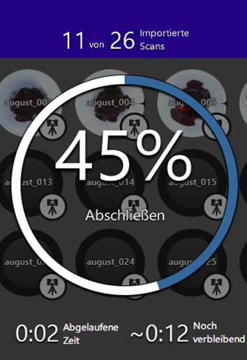 Sowohl für den Import- als auch für den Registrierungsprozess wird die geschätzte Zeit bis zum Abschluss und die verstrichene Zeit angegeben: