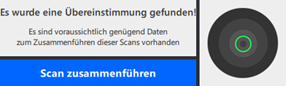 Die automatische Registrierung ist auch während des gesamten manuellen Registrierungsvorgangs aktiv. Es wird geprüft, ob der aktiv ausgewählte Scan auf der rechten Seite mit dem ausgewählten Scan in der Scangruppe auf der linken Seite zusammenpasst. Bei einer Übereinstimmung oder möglichen Übereinstimmung werden Sie aufgefordert, die Funktion zur automatischen Registrierung zu verwenden.