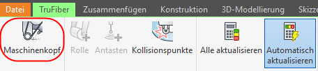 Inventor wechselt zum TruFiber-Browser, und diesem wird der Knoten Maschinenkopf hinzugefügt.