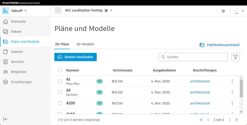 Um publizierte Pläne und Modelle anzuzeigen, zu öffnen oder Ermittlungen durchzuführen, müssen Sie zum Takeoff-Viewer navigieren.