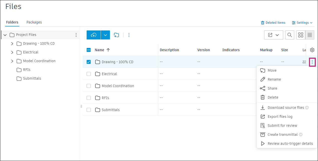 In the Files tool in ACC, choose or create the folder that will contain Informed Design products you want to share.
