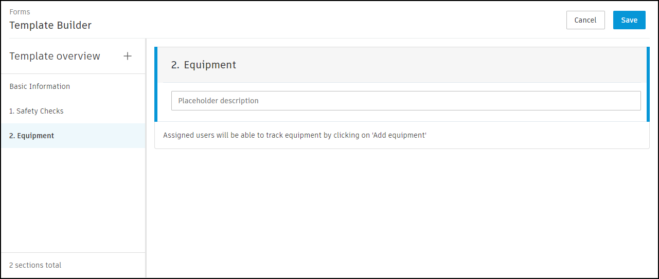 This adds a section with the Add equipment option to allow your team to track equipment use. If needed, you can change the title and add a description.