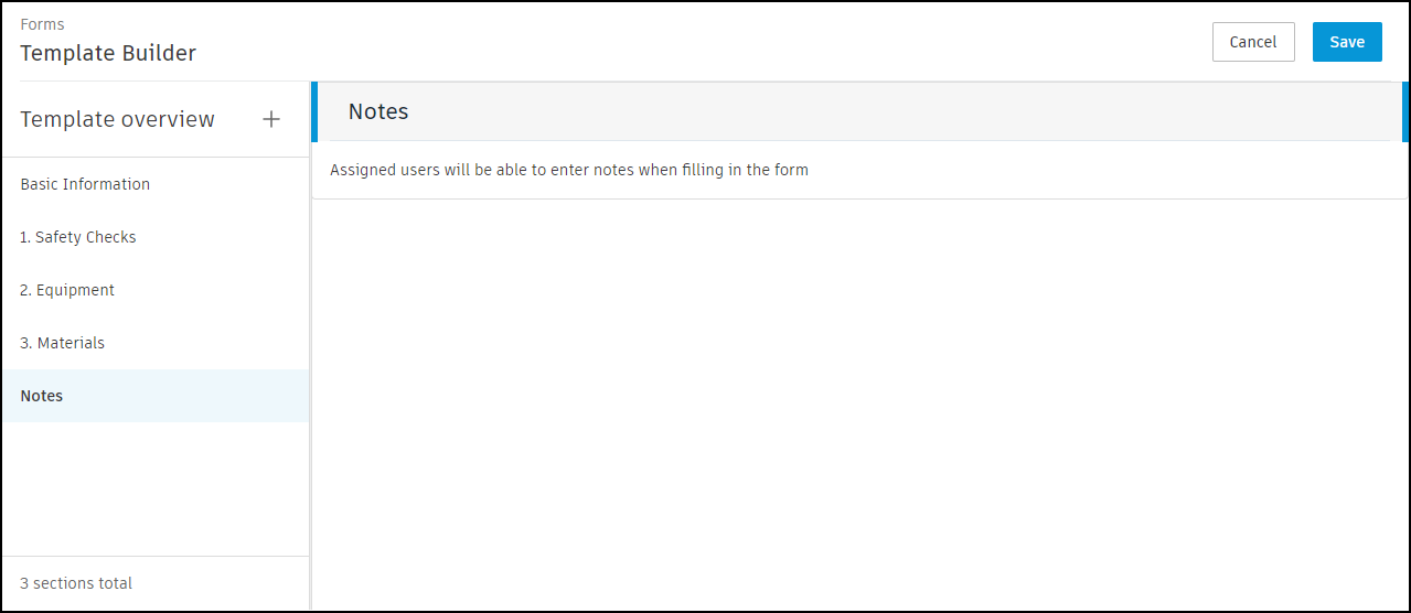 This adds a section for your team to add notes to any form. Notes will always appear at the bottom of your template.