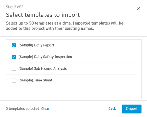 When you import templates from a PlanGrid project, they will retain the existing collaboration style and conditional logic settings. However, it will not have any assigned contributors, reviewers or managers. You will need to reassign those roles to each imported template.