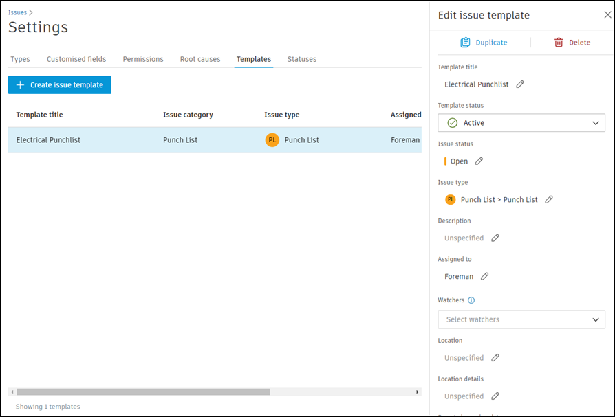 Issue templates are currently available only to Forma Build or Autodesk Data Managemen subscribers.