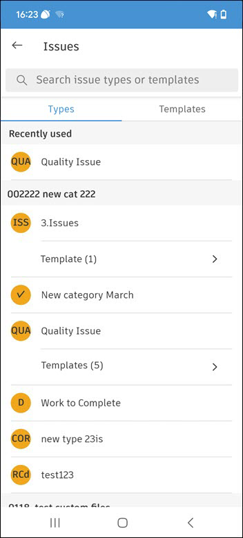 E: Issues: Tap to view the list of available of issue types and templates.