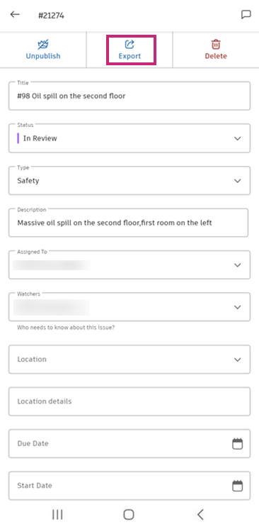 In the Issues tool in the Autodesk Construction Cloud mobile app, tap an issue you want to edit.