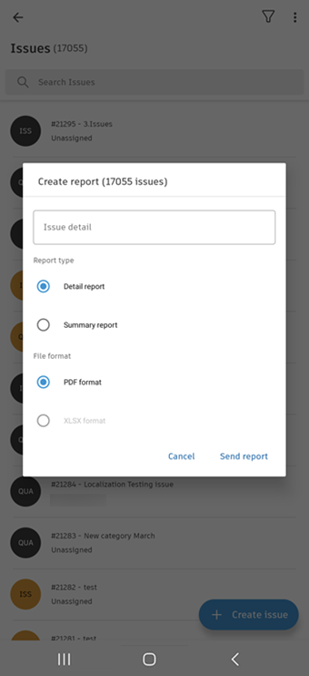 Create an issue by tapping Create issue button at the bottom of the screen.