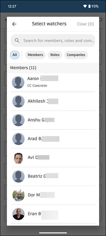 Watchers: Tap Members, Roles or Companies.