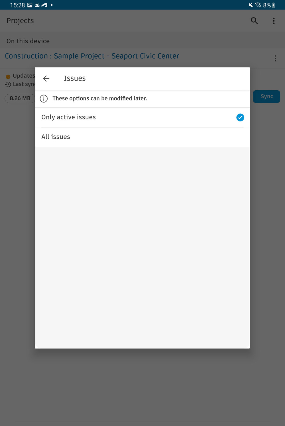 By default, when you download your project on your Android device, only active issues are downloaded.