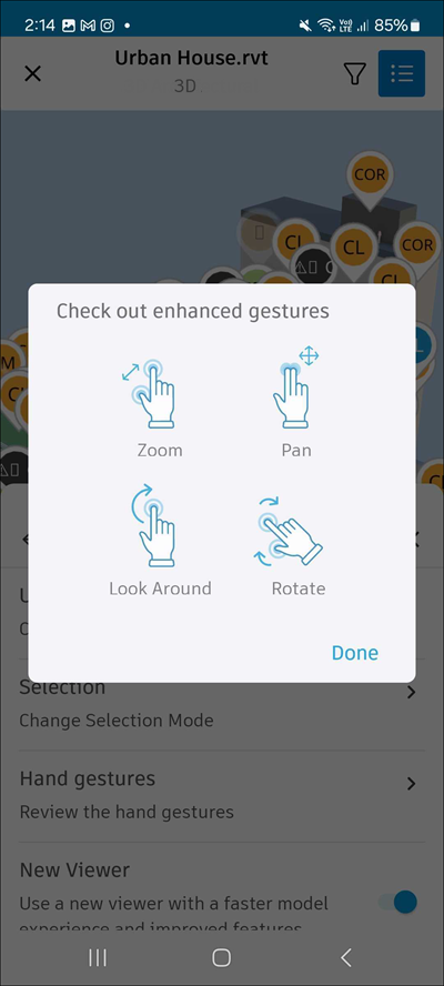 Review the hand gestures: zoom, pan, look around and rotate
