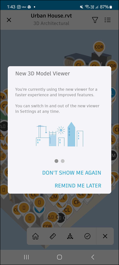Working with issues on 3D models in the new viewer for Android allows you to visually place, review and manage issues directly within your project’s 3D environment. This feature helps teams identify and resolve design or construction problems in context, improving collaboration and accuracy. You can view issue pins on models, access issue details and use specialised tools for navigation, measurement and markup.