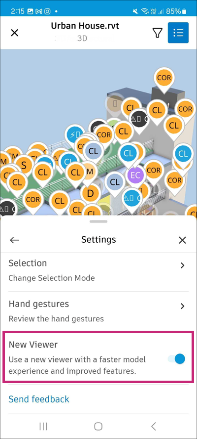 Toggle on or off the new viewer option to use the new 3D model viewer. This option is enabled by default. If you disable it, you will be able to use the legacy viewer.