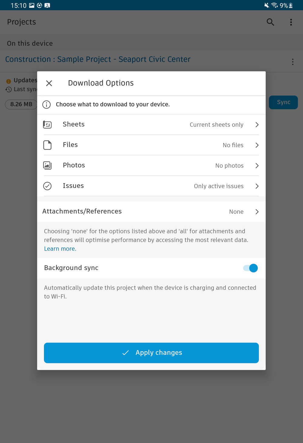 See Sheets on Autodesk Construction Cloud Mobile App and Files on Autodesk Construction Cloud Mobile App for more information.