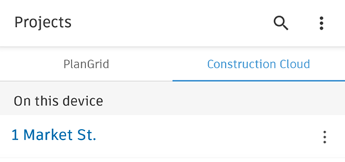 The app will open on the Projects page and with the Construction Cloud tab open. This is where your Autodesk Construction Cloud platform projects are listed as: