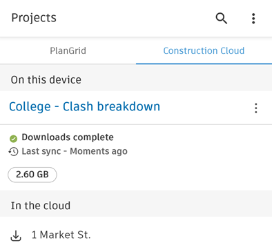 To download a project to your device, tap the name of the relevant project In the cloud.