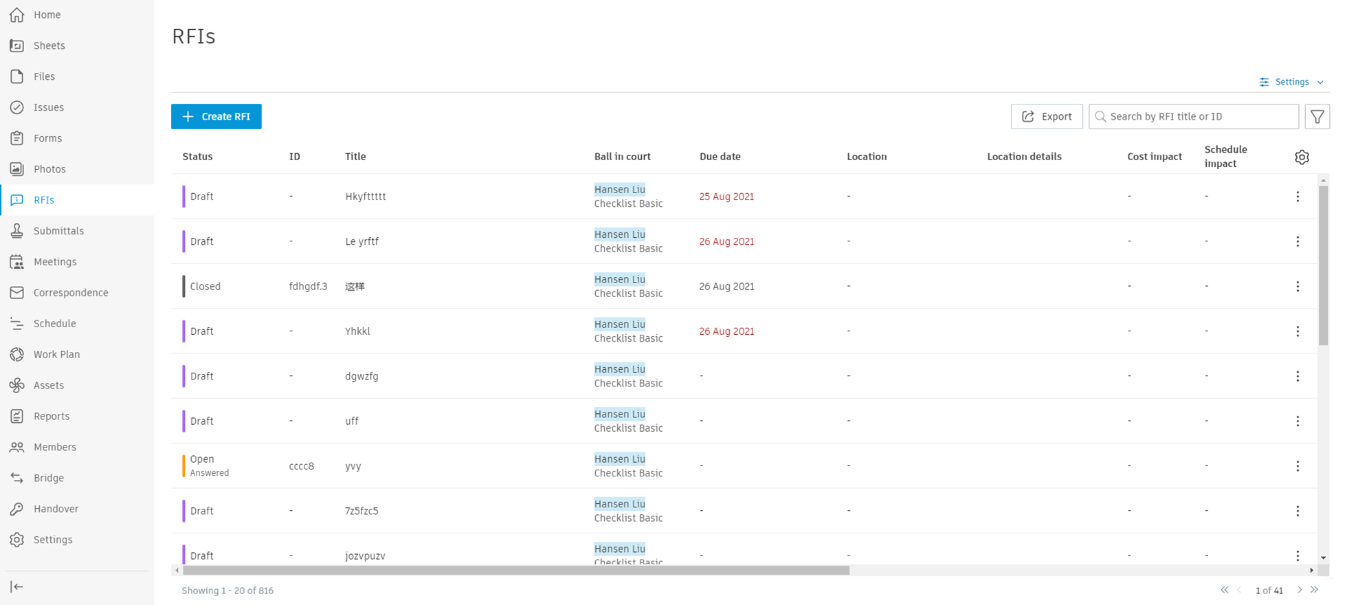 Before starting to work with RFI tool see RFI Administration to learn more about permissions, custom fields, types and more.