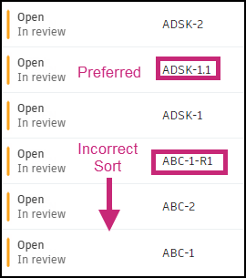 To ensure proper sorting, use the RFI revision format X.1 when creating revision RFIs.