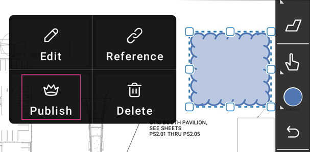 An unpublished markup is only visible to the member who created it. All markups are initially unpublished, and members with the relevant permissions must publish these to make them visible to the entire project.