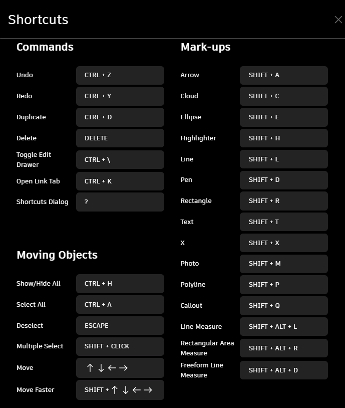 You can access keyboard shortcuts on web to quickly add and organise mark-ups.