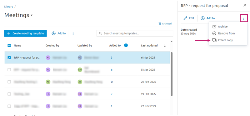 Creating a copy of a meeting template can help you to quickly create templates for different projects or purposes.