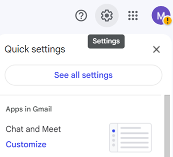 At the top right, click Settings > See all settings.