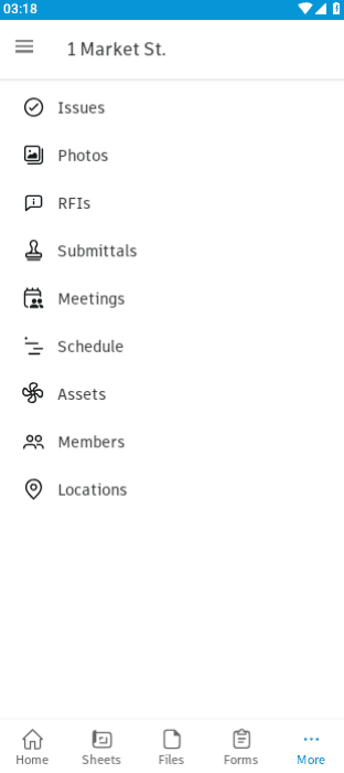 Tap the desired location or use the expand icon to get to the desired sub-location in order to access Issues, Forms, Assets, RFIs or Submittals associated with this location.