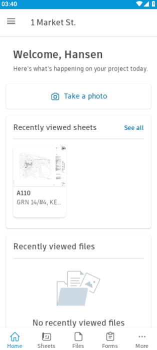 Tap the relevant tool, such as Issues, RFIs, Submittals or Photos.