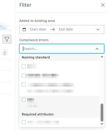 If the holding area setting is turned on, members can choose not to correct any non-compliant attribute values and continue. Compliant files will be uploaded to the target folder, and non-compliant files will be stored in the holding area. The attribute values can be edited later so the files are displayed in the relevant folder.