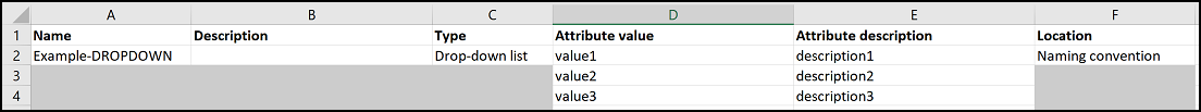 Drop-down attributes: You can also add attribute values and a description for each attribute value.