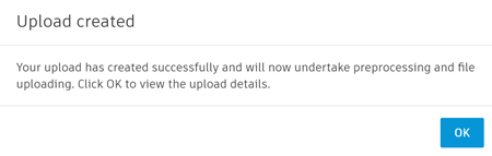 When this is completed, you'll see the Upload created dialog.