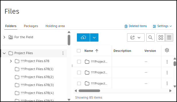 In the Files tool, you can upload, organise and store any project documentation. Items stored in Files are accessible to other Autodesk Construction Cloud products such as Autodesk Build.