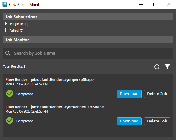 | Flow Render menu | Job Submitter window | Job Monitor window |