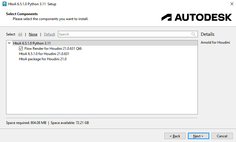 Skips Houdini package setup and only extracts HtoA. |