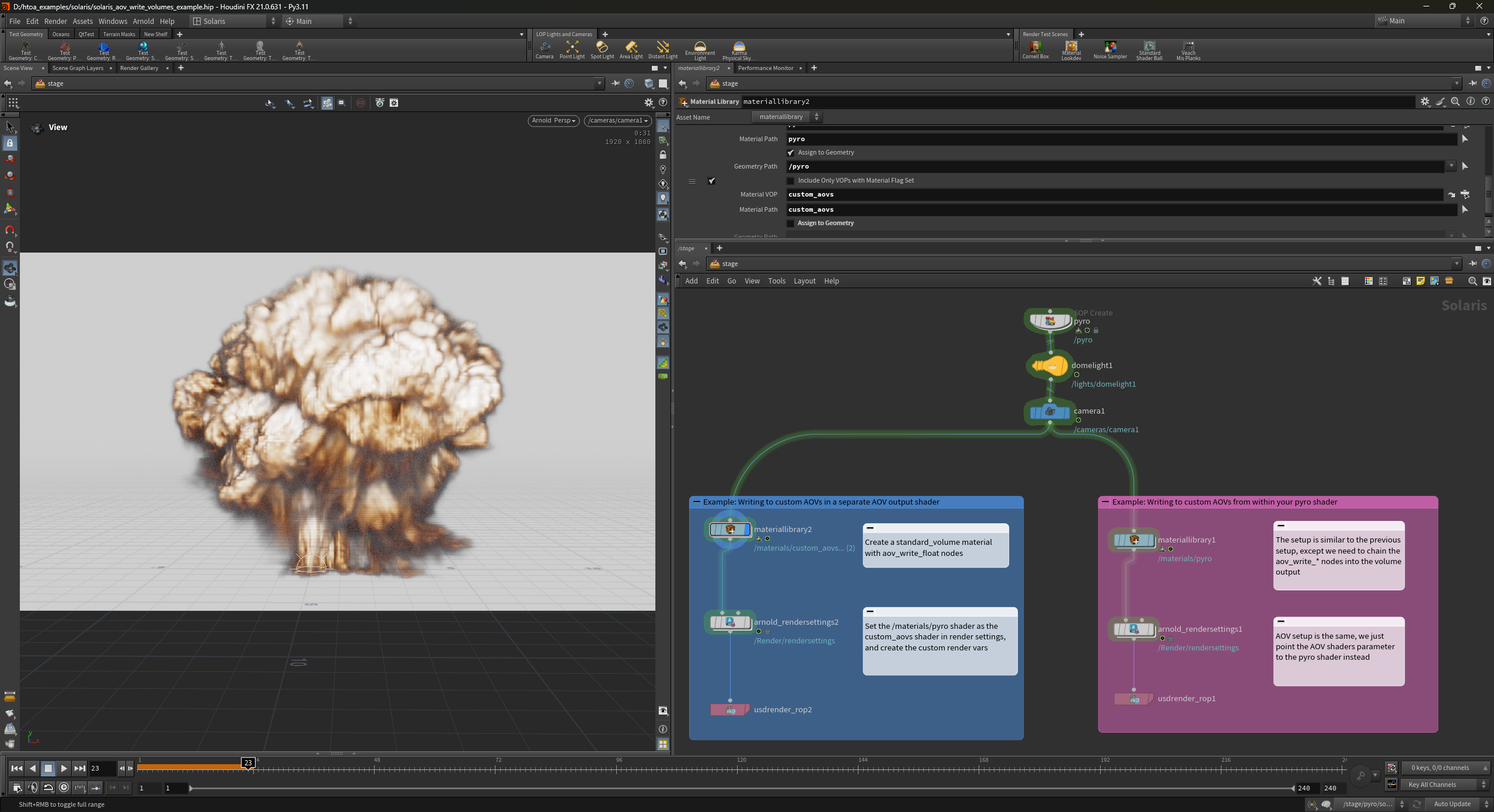 The examples below show a setup for custom AOVs and volumes in Solaris. The workflows are: